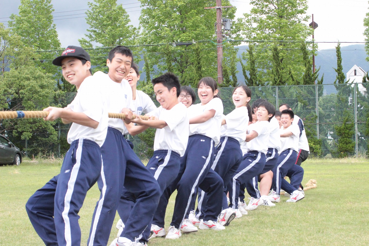 食後には学年のクラス対抗で綱引き大会。