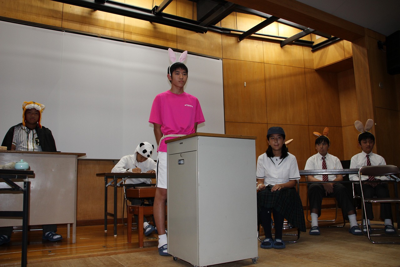 この演劇は、タヌキを殺したウサギが動物の世界の裁判「どうぶつ村法廷」で裁きを受けるものです。