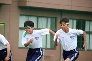 種目は様々で「100m走」や「リレー」などといった定番競技や「フrunフープ(フラフープの中に入って走る)」「12人13脚」などといった変り種もあります!どの競技にも、生徒達は楽しんで出場していました!