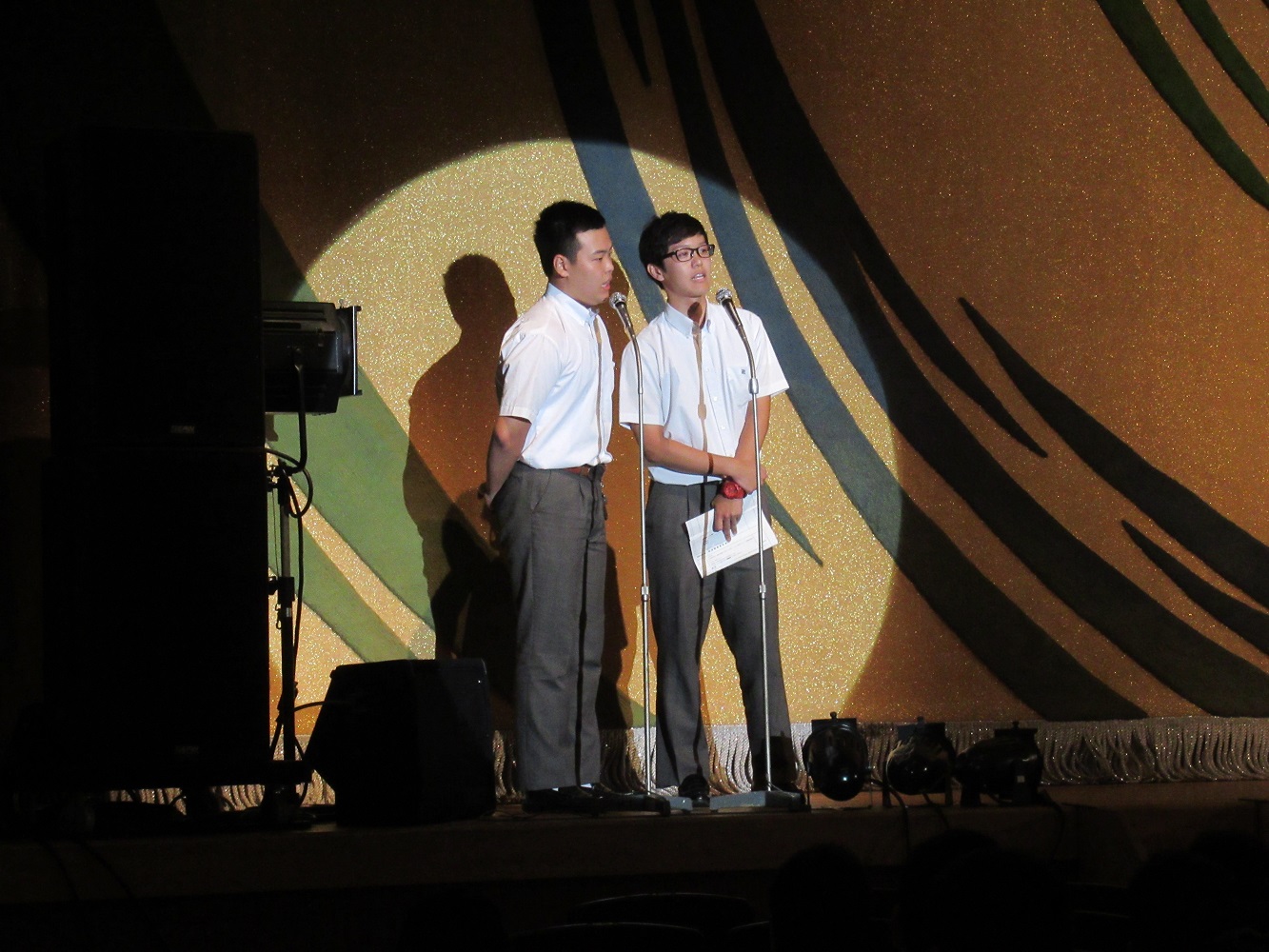 司会進行役は、椎名君、生徒会副会長の榎本君、同じく副会長の長尾君の3名でした。