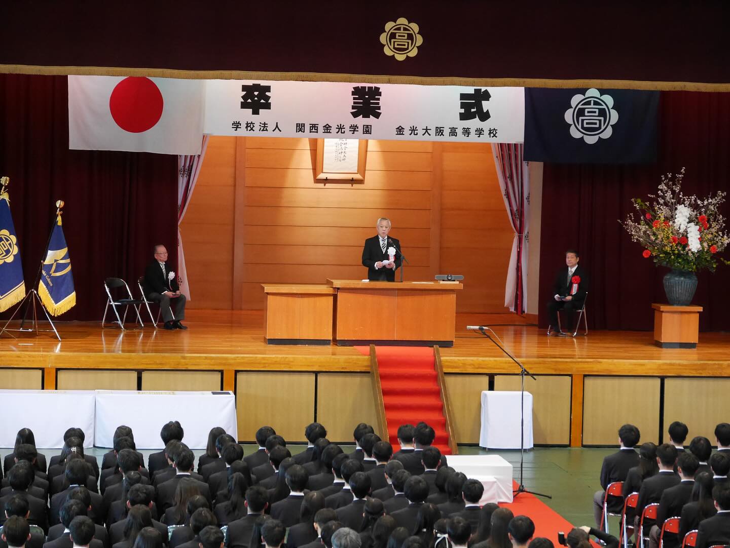 卒業証書、各種表彰状授与の後、校長は式辞の中で、卒業生に対し「誇りのもてる人生を送ってほしい」と述べられました。3年間で様々なことを経験し、大きく成長した41期生の皆さん。高校生活で共に過ごした仲間、先生たちと別れを告げ、これからはそれぞれの新しい道へと進んでいきます。
