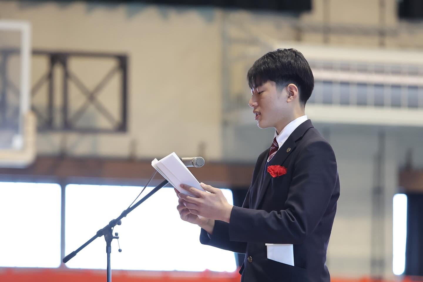 津本校長は式辞で、3年次の8月に実施したニュージーランド短期留学と文化祭の和太鼓演奏について触れるとともに、ここまでの学校生活で身につけた主体性を大切にし、今後更なる成長に繋げてほしいとお話しされました。