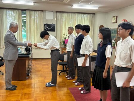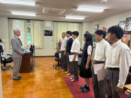 【高校 後期生徒会役員認証式】 TOPICS 高校NEWS 9月22日(月)に行われた生徒会役員選挙で当選した令和7年度後期生徒会役員に対して、認証式が行われました。 生徒の皆さんがより一層元気に学校生活を送れるように、生徒会が中心となって活動していきましょう💫