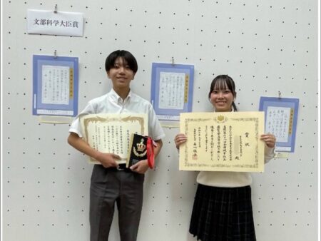 また、「高校個人の部」では、2年生の部員が、全国第1位となる「文部科学大臣賞」を受賞しました。個人の部での「文部科学大臣賞」の受賞は、実に26年ぶりとなる快挙です。そのほかにも個人の部で7名の部員が特別賞を受賞しました。