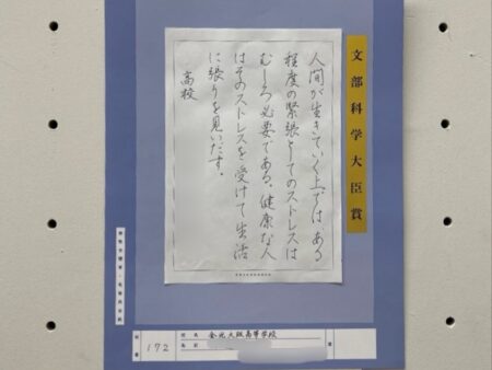 9月23日(火)~28日(日)に大阪市立美術館にて行われました日本書写教育研究会主催の「第68回全国硬筆作品展覧会」おいて、高校団体の部「日本PTA全国協議会会長賞」(全国第3位)を受賞しました。