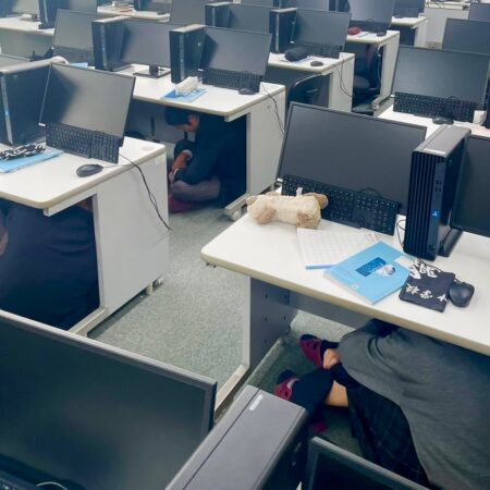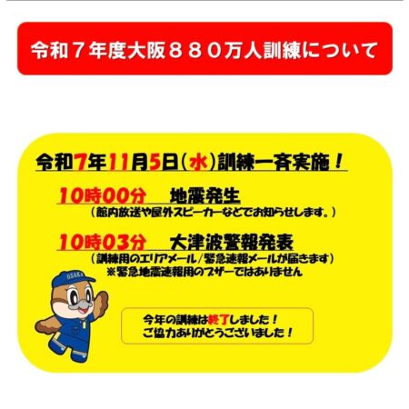 【大阪880万人訓練】 TOPICS 高校NEWS 中学NEWS 11月5日(水)、大阪880万人訓練を実施しました。地震が発生したことを想定し、避難経路の確認や災害伝言ダイヤル等の利用について教員から説明しました。 今回の訓練により、防災意識を高めるきっかけにしていきましょう。