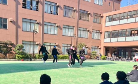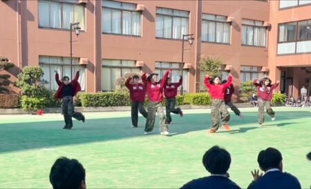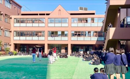 【ダンス部 中庭演技】 TOPICS 高校部活 11月21日(金)の昼休みにダンス部が中庭で演技を披露しました🕺🏻🎵 今週は寒い日が続いていますが、中高生共に学年関係なくたくさんの生徒が中庭に集まり、大盛り上がりでした🍂❄️
