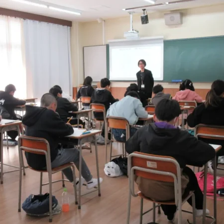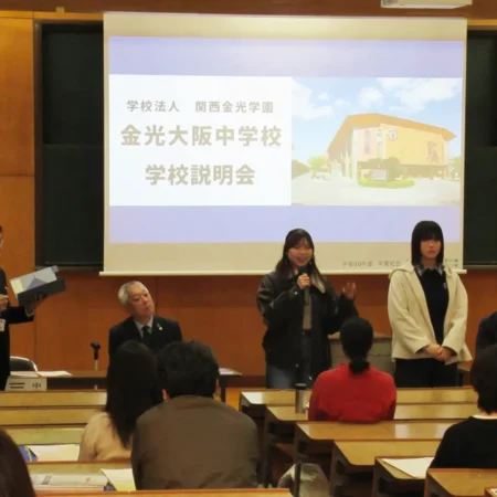 プレテストと並行して実施した学校説明会では、本校の授業や行事について教員から説明させていただいた後、卒業生が金光大阪中学校の魅力や、中学生の時に得られた経験などを語ってくれました!