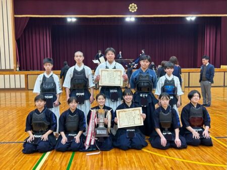 今年で34回目となったこの大会は本校剣道部の創部10年を記念し、地域の少年剣道の普及や、「交剣知愛」をモットーに始まりました。在校生と卒業生がコート係や審判を行う手作りの試合運営となっている大会です。