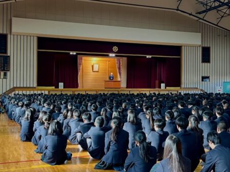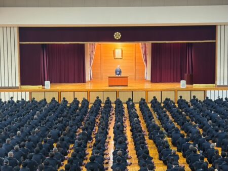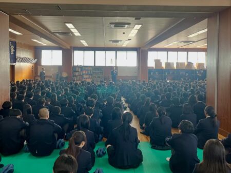 津本校長は式辞で、正月に行われた箱根駅伝で懸命に走るランナーについて触れ、「一生懸命に頑張る姿は見ている人の心を打つ。皆さんも頑張ることを惜しまず、日々の学校生活を送ってほしい。日数としては短い3学期を充実したものにしましょう。」と述べられました。その後は新年最初の学年集会やホームルームが行われました。