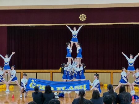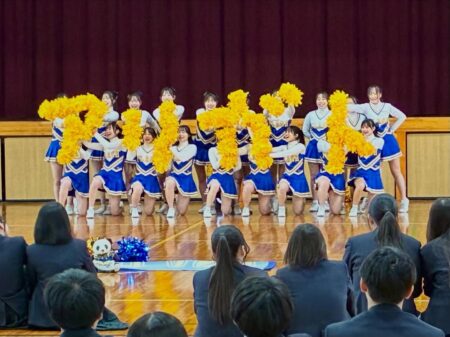 【チアリーダー部 演技披露】 TOPICS 高校部活 2月18日(水)の昼休みに体育館で演技を行い、たくさんの生徒の前で日頃の練習の成果を披露しました✨ 3月15日(日)に西日本選手権大会が行われます。皆さんに元気、勇気、笑顔を届けられるよう頑張ります😊
